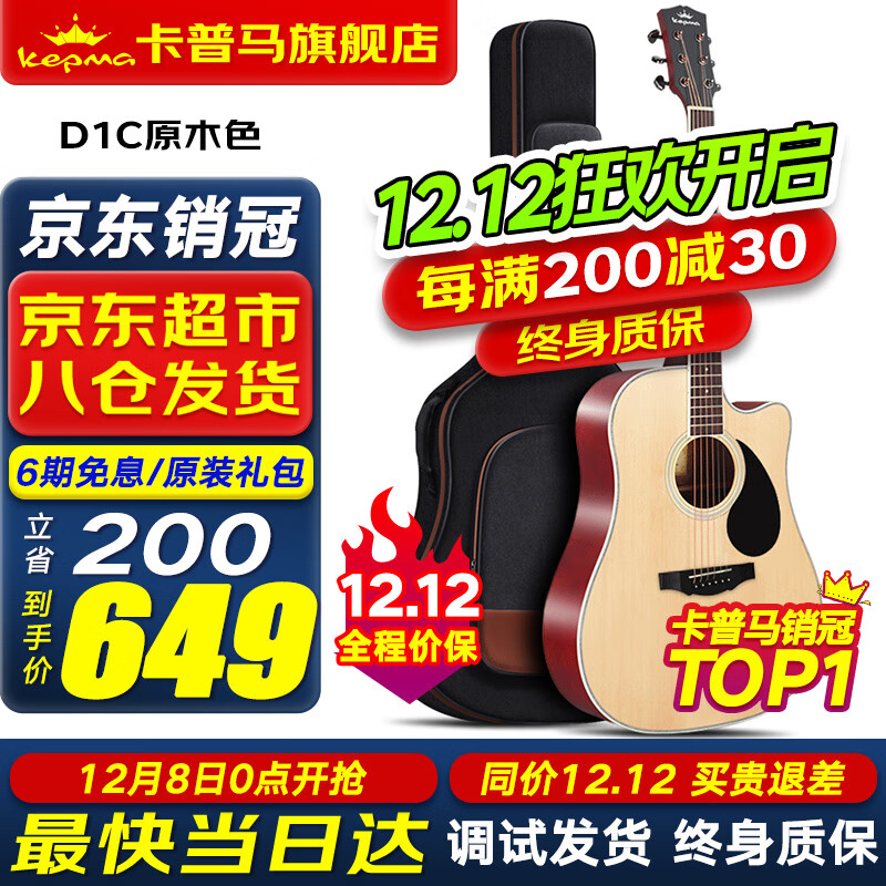 旗舰店KEPMA卡普马EDC/EAC/D1C/A1C吉他旗舰民谣卡马卡玛木吉它初学电箱男女 41英寸【经典款】D1C原木色