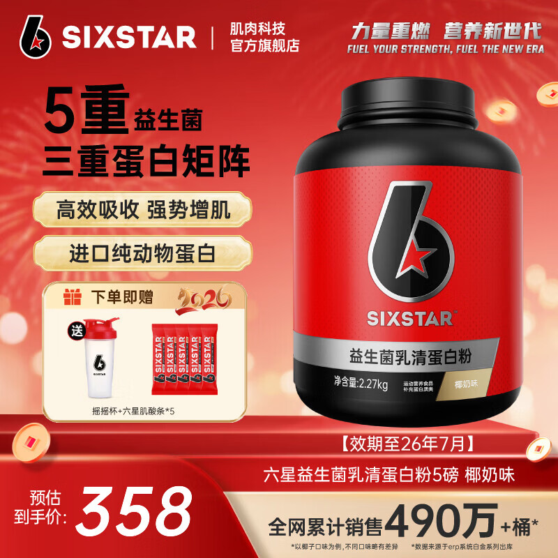 旗舰店六星(SIXSTAR)乳清蛋白粉增肌粉益生菌高蛋白健身增肌塑形营养好吸收含分离水解 【奶香醇厚】椰奶乳清蛋白粉 5磅*1桶