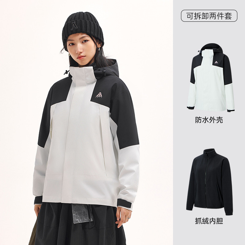 安踏 水壳冲锋衣丨三合一户外两件套冲锋衣女春秋潮流防风户外登山外套