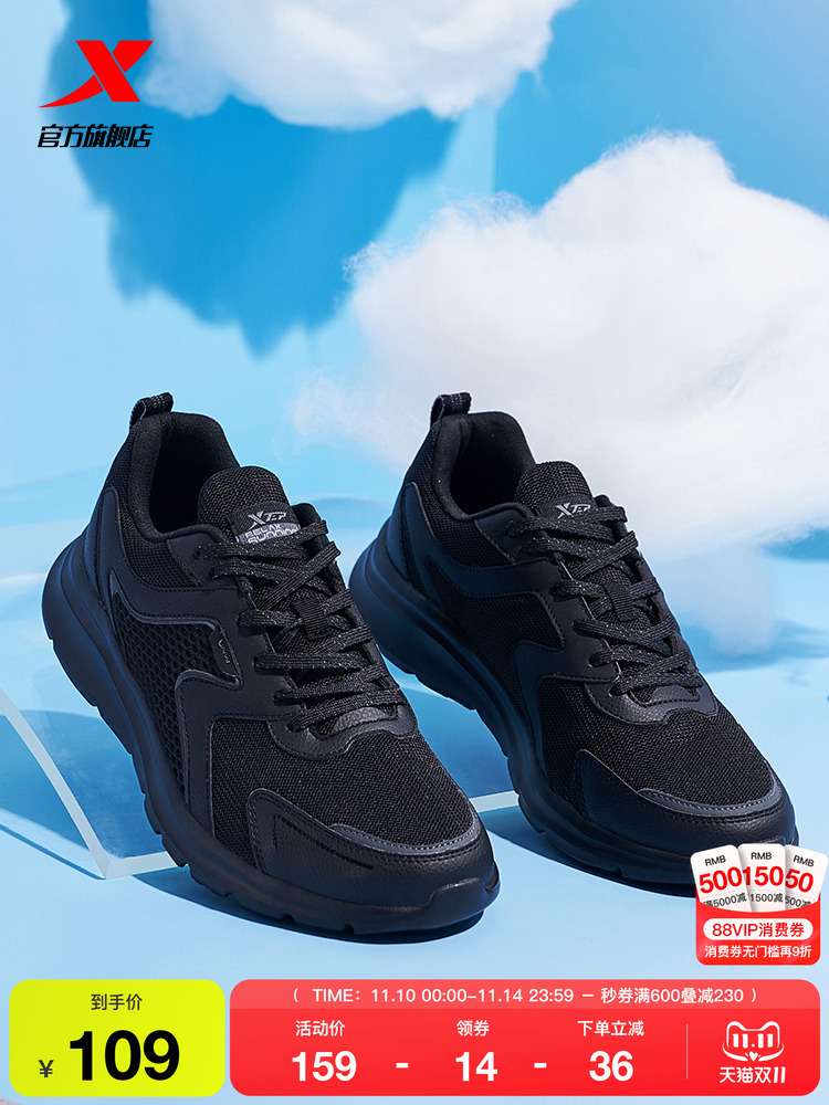 旗舰店特步(XTEP)【国潮】男鞋跑步鞋春季新款运动鞋男轻便减震休闲鞋跑鞋学生 【网面】黑 42