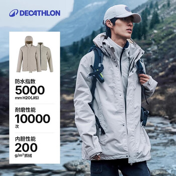 旗舰店迪卡侬冲锋衣男三合一男女抓绒夹克男女防风防水保暖可拆抓绒衣内胆外套 男款 月白色 L