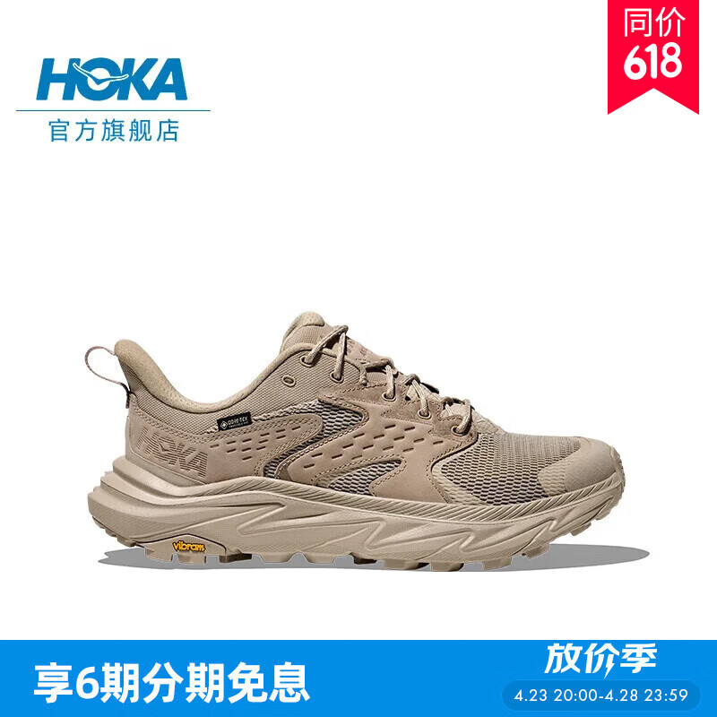 旗舰店HOKA ONE ONE男款夏季低帮防水版ANACAPA 2 LOW GTX户外透气舒适 亚麻色/橡木白 44