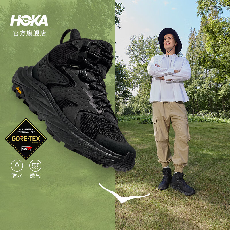 旗舰店HOKA男女款秋季中帮防水户外徒步鞋ANACAPA 2 GTX透气 黑色 / 黑色-男 42.5