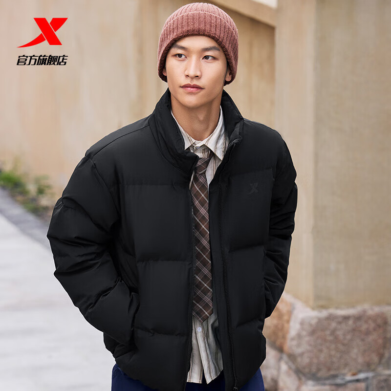 旗舰店特步(XTEP)(XTEP)80%绒短款羽绒服男女款冬季新款保暖防风加厚外套男 正黑色-0115-80%绒 L