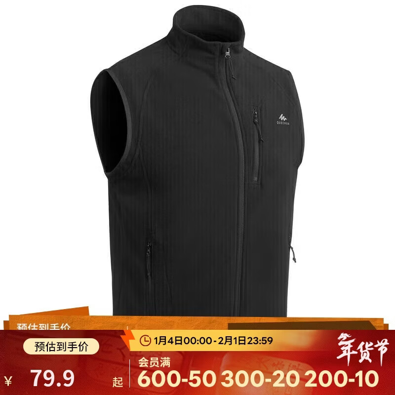 自营迪卡侬男士秋冬马甲MH120户外保暖摇粒绒拉链背心黑色L 1406395