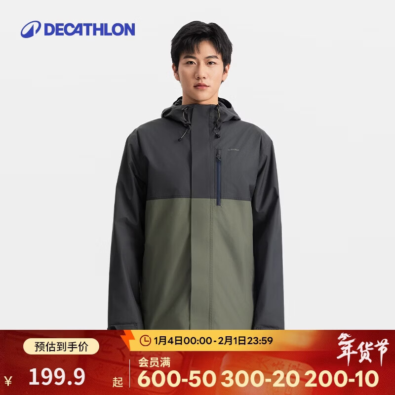 旗舰店迪卡侬(DECATHLON)冲锋衣男NH500户外秋冬徒步登山服外套防风防水夹克 苔原绿-2025年新 L