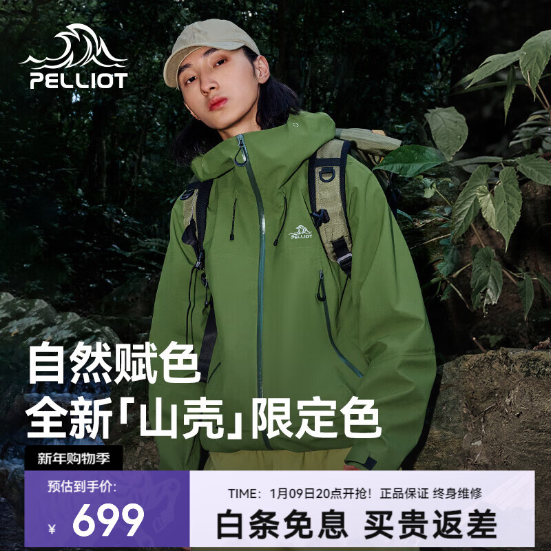 旗舰店伯希和(Pelliot)【山壳|限定色】冲锋衣男女外套户外硬壳工装暴雨级防水登山夹克 【男女同款】鼠尾绿 |全天候硬壳 XXS