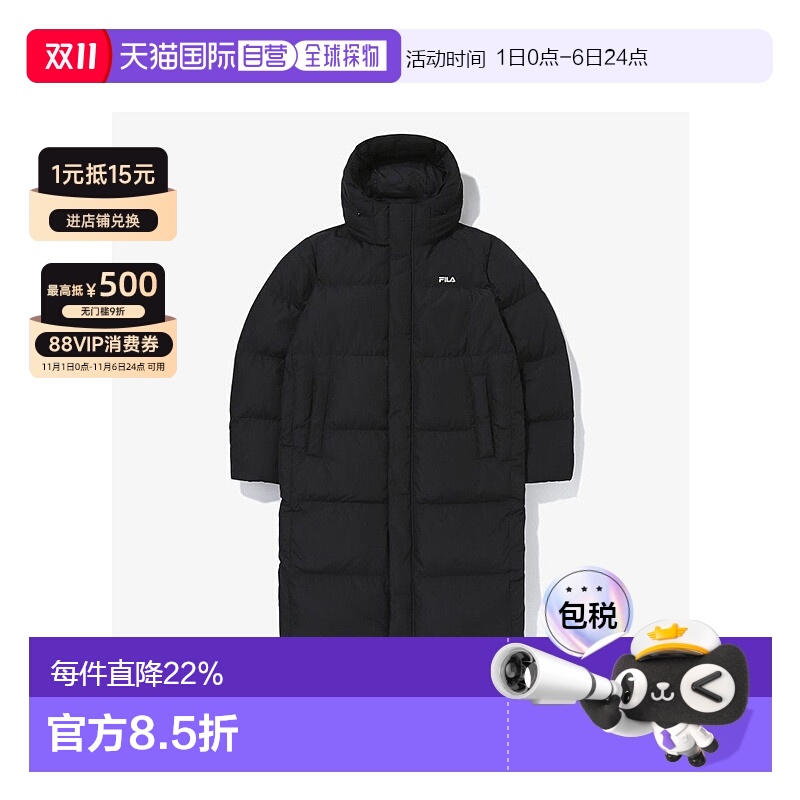 韩国直邮Fila/斐乐休闲宽松拉链字母印花连帽羽绒服FS254DJ01X005