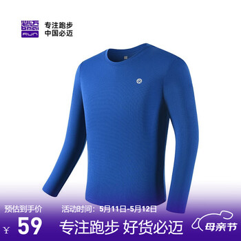 旗舰店必迈(bmai)魔方长袖高弹力马拉松速干舒适跑步运动套头衫柔软吸湿T恤 深蓝色【男】 M