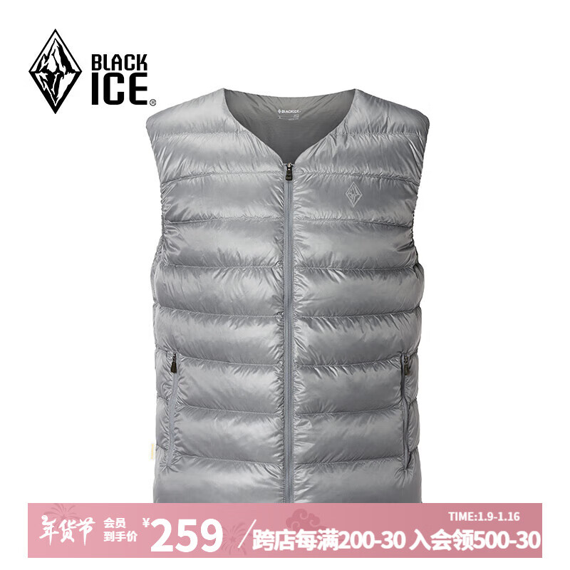 旗舰店黑冰24新款轻暖舒适男款薄款600+蓬鹅绒羽绒马甲 灰色 XXL