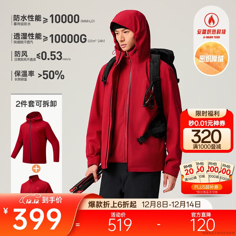 山河衣 361度冲锋衣2025秋季新款三合一防泼水加绒外套户外登山服