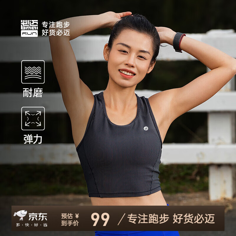 旗舰店必迈新款女跑步竞赛压缩背心稳定支撑高碳舒适含胸垫瑜伽健身内衣 优雅黑 M
