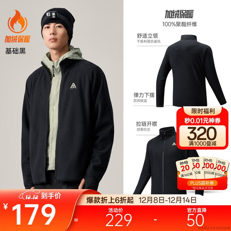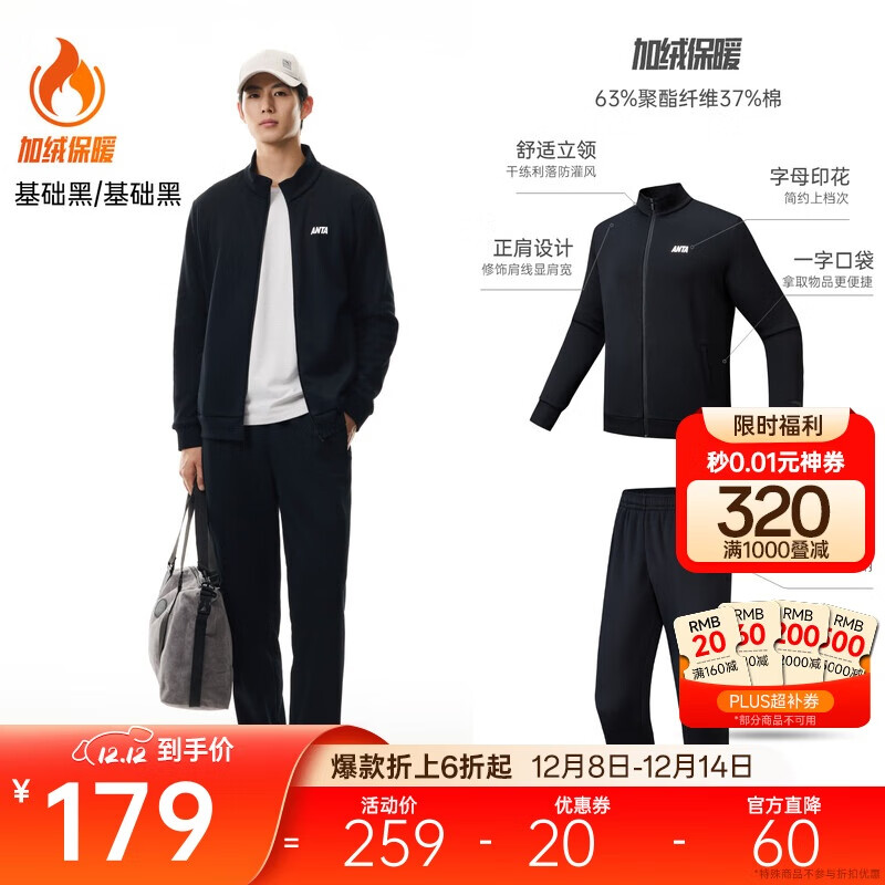 自营安踏易打理加绒运动套装男士秋季新款立领针织外套上衣长裤两件套