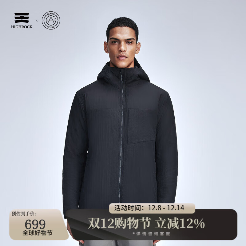 UNDER ARMOUR新款连帽修身轻薄羽绒服防风秋冬短款90鸭绒运动休闲保暖外套 黑色 170 100斤-130斤