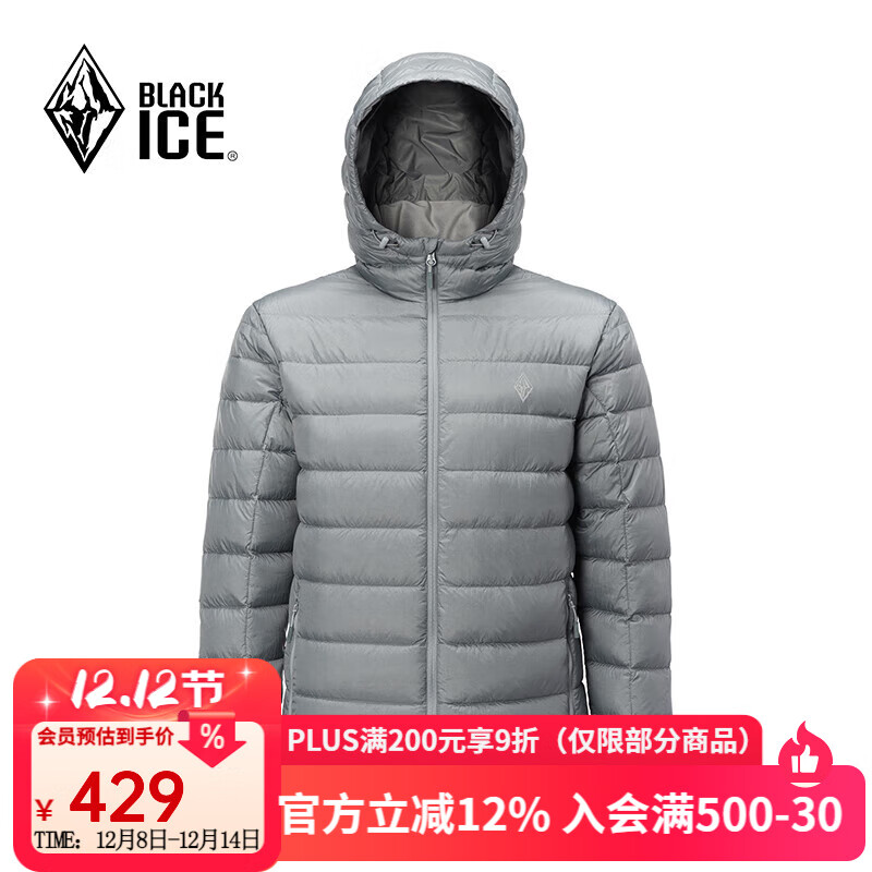 旗舰店黑冰户外登山徒步男款600蓬鹅绒防风防泼透湿抑菌抗静电保暖羽绒服 FDE8102(连帽款)-石纹灰 S