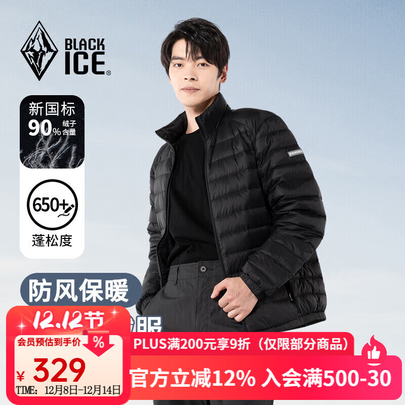 旗舰店黑冰户外保暖轻量便携羽绒内胆男款立领休闲鸭绒羽绒服FAF8901 哑黑 L