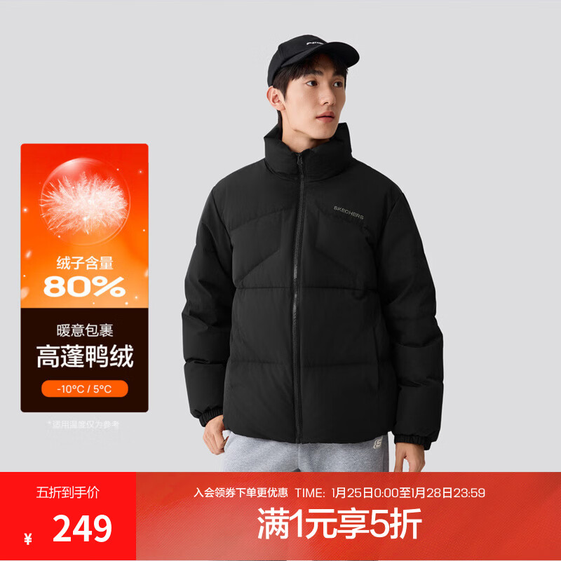 旗舰店斯凯奇【立领短款】25年冬新品运动羽绒服男短款质感男士羽绒服外套 碳黑/0018 XL