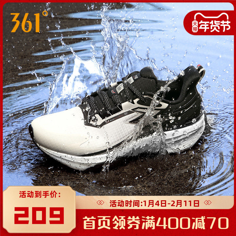 旗舰店361雨屏8.0跑步鞋男鞋新款防泼水运动鞋雨天通勤黑色鞋子减震跑鞋