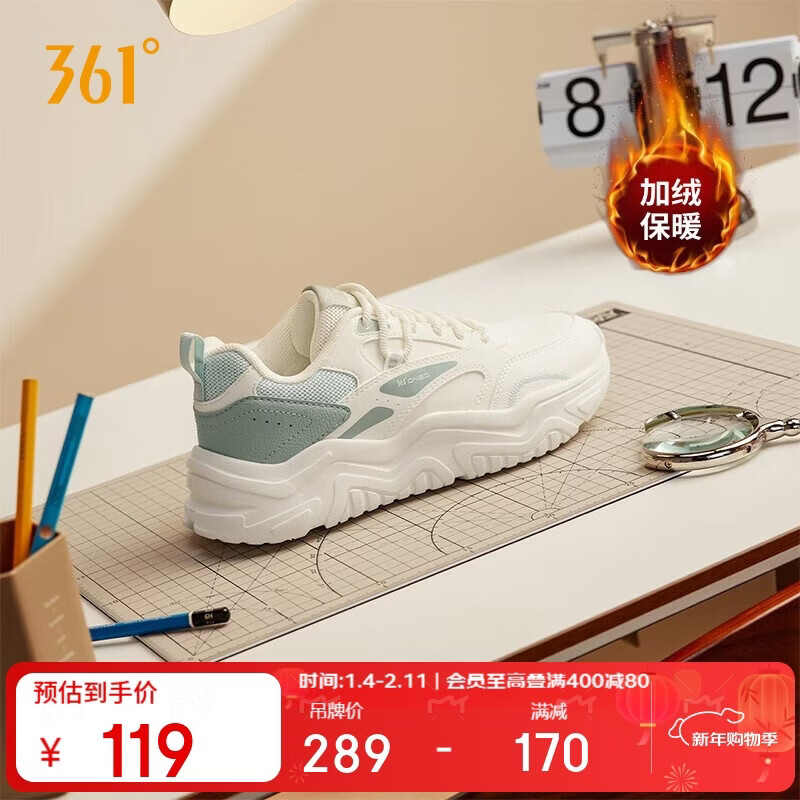 自营361°运动女鞋加绒保暖棉鞋冬季女士复古厚底休闲老爹鞋子682446738-1