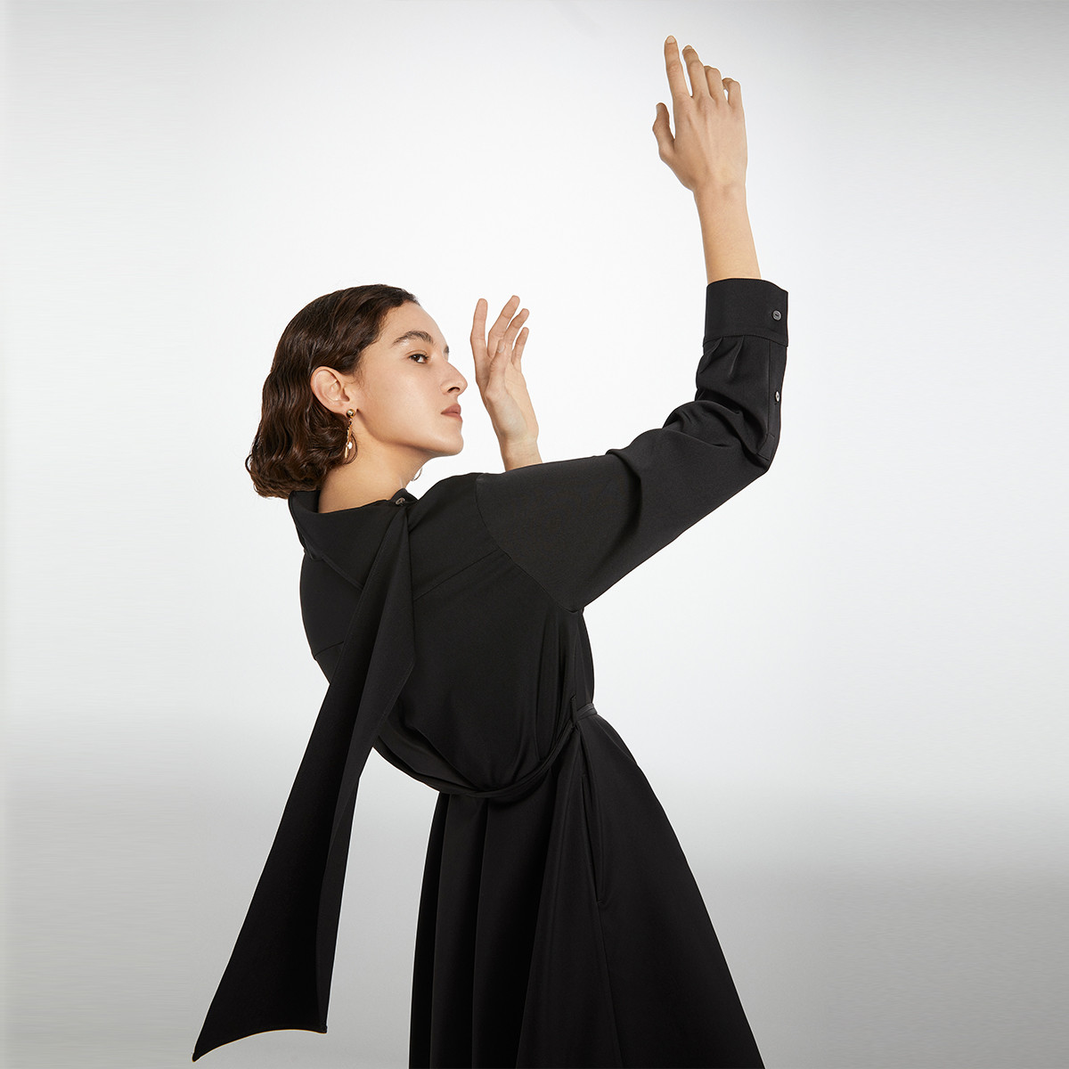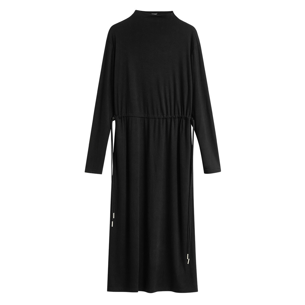 自营茵曼 【特卖福利】法式立领收腰连衣裙女春秋季通勤气质内搭A字小黑裙