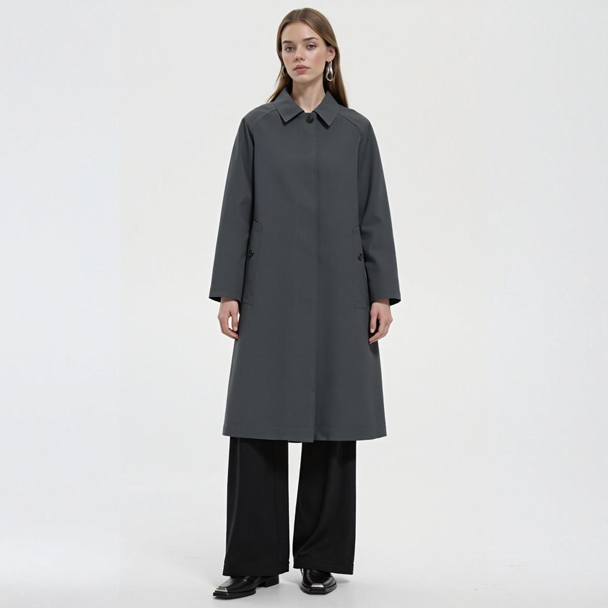 【卡姆登版型】女式纯棉随性摩登插肩袖中长款极简风衣外套