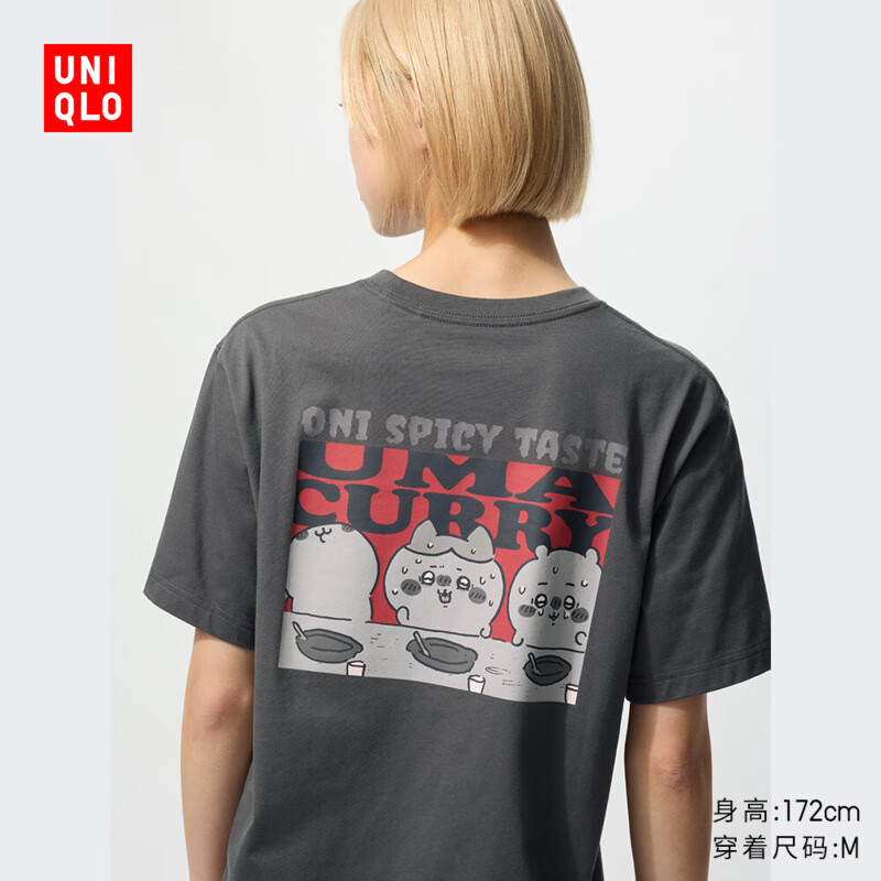 优衣库女装男装情侣UT CHIIKAWA印花短袖T恤481155 07 青灰色 XS /150/76A