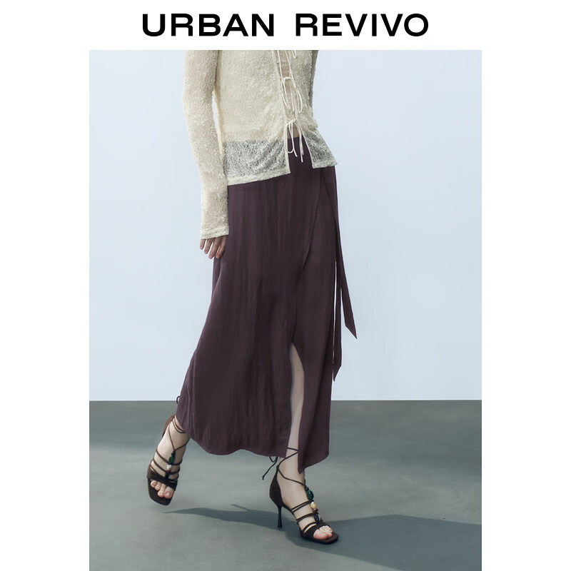 旗舰店UR夏季新款女装时尚摩登气质蝴蝶结系带半裙UWM550016 暗紫 (有内衬) XXS