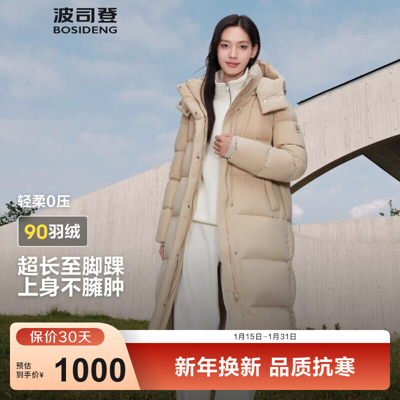 旗舰店波司登(BOSIDENG)冬季羽绒服女款长款可脱卸帽加厚冬新国标90绒商场同款修身外套 半糖卡其7A34 XS 155/80A 体重约110以内