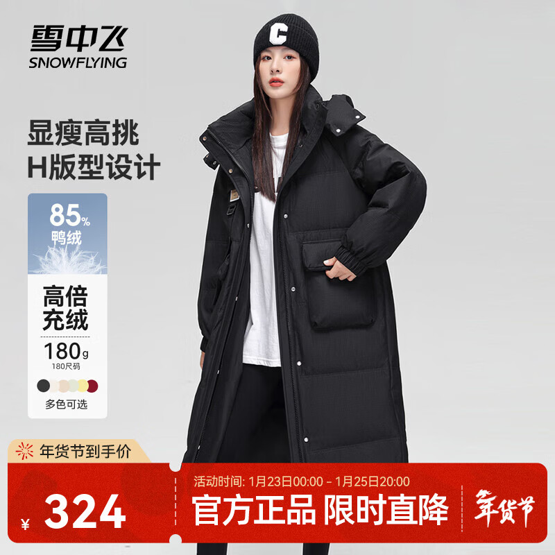 旗舰店雪中飞秋冬新款保暖女士直筒显瘦版型可拆卸帽长款过膝女士羽绒服女 黑色|8056 S /160/84A