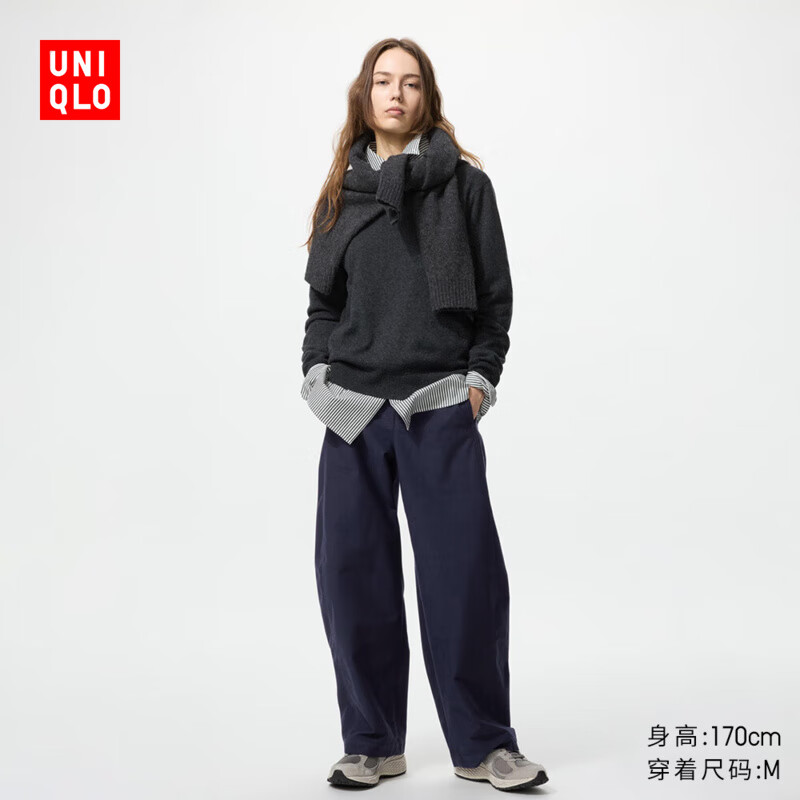 优衣库女装针织廓形长裤/弯刀镰刀裤子25秋冬新款483722 483722/69藏青色 M