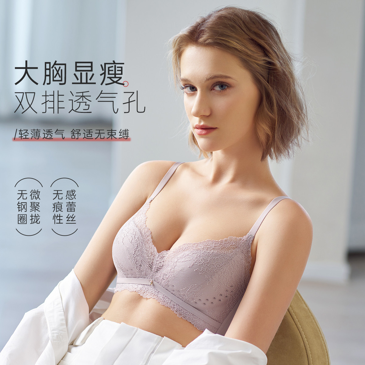 伊维斯 【46颗呼吸孔+5mm薄杯】大胸蕾丝显瘦侧收无痕无钢圈文胸女