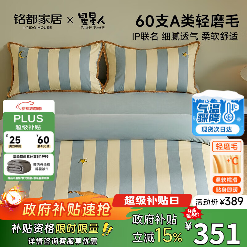 自营MIDO HOUSE铭都&星星人联名纯棉四件套床上用品60支全棉被套高端轻奢高级感星星许愿池 1.2m床单款