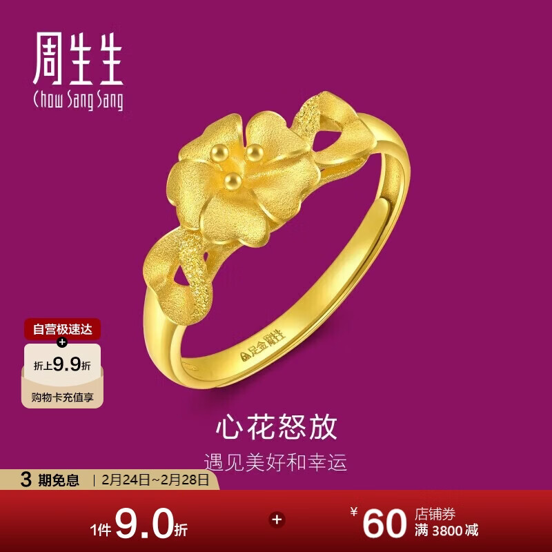 自营周生生新年礼物黄金戒指 心花怒放足金素圈戒指开口戒27942R计价 2.85克
