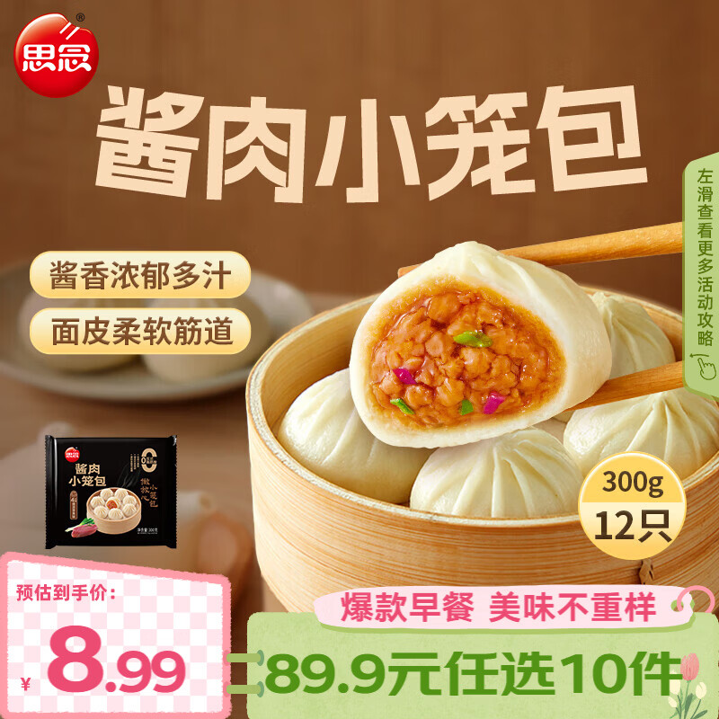 旗舰店思念 面点早餐组合任选 纸皮烧麦 饭团烧卖牛肉馅饼小笼包春卷 酱肉小笼包300g