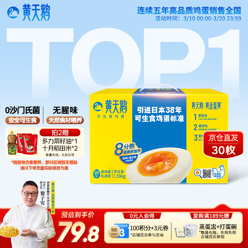自营黄天鹅可生食鸡蛋 30枚/3.18斤礼盒装 生鲜鸡蛋京东自营送礼
