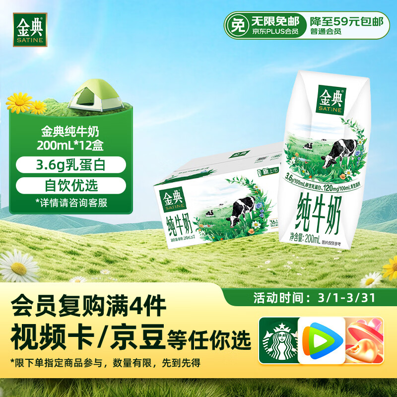 自营伊利金典纯牛奶整箱 200ml*12盒 3.6g乳蛋白 原生高钙 礼盒装