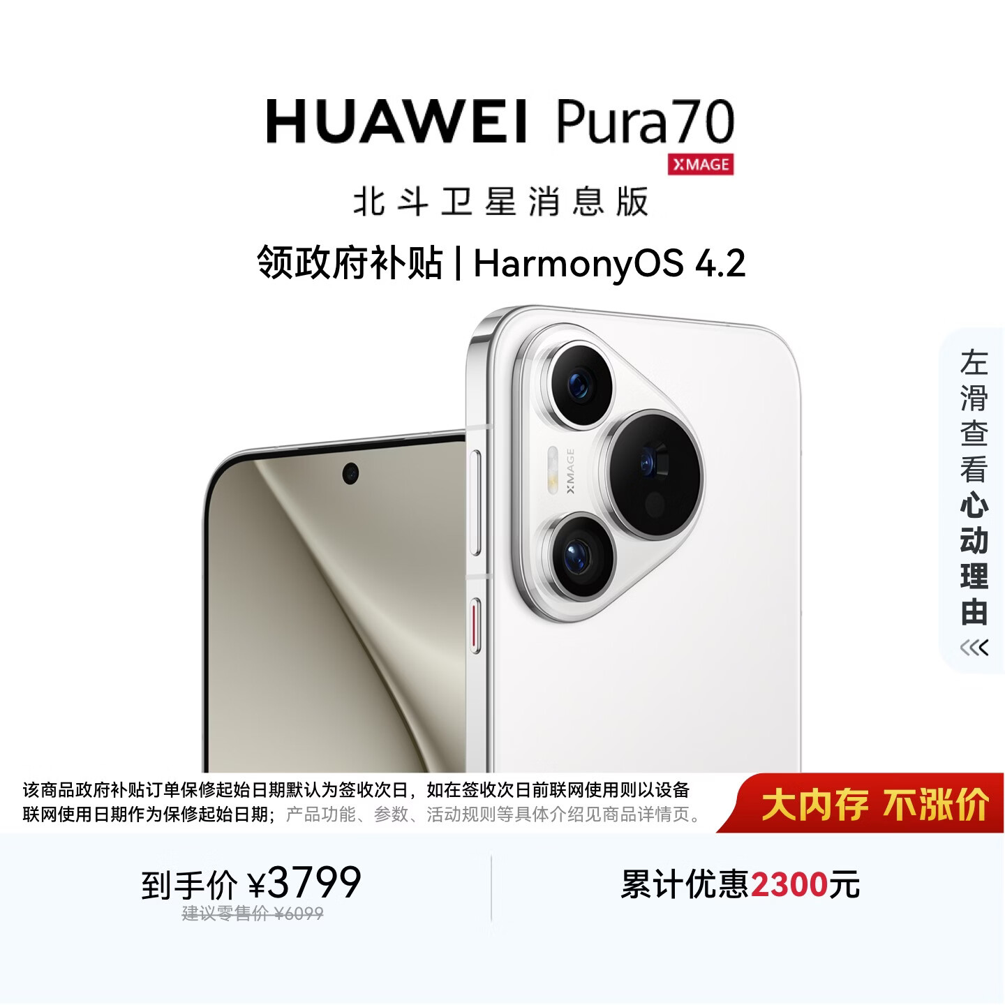 自营HUAWEI Pura 70 12GB+512GB 雪域白 北斗卫星消息版 超高速风驰闪拍【鸿蒙系统4.2 适配主流APP】