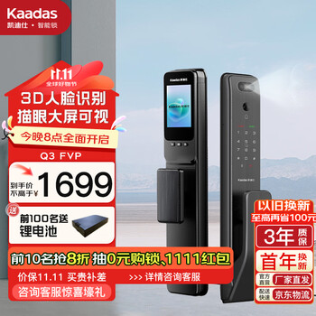 旗舰店凯迪仕(KAADAS)Q3FVP人脸识别智能锁指纹锁全自动防盗门电子锁猫眼可视密码锁 Q3FVP至尊版【人脸+大屏猫眼】