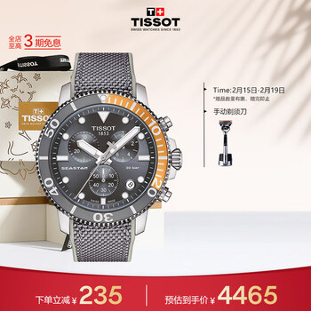 自营天梭(TISSOT)瑞士手表 海星系列 布带石英男表情人节送男友T120.417.17.081.01