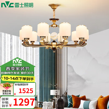 旗舰店雷士(NVC)新中式吊灯现代中式客厅吊灯卧室灯餐厅复古中山灯具全屋灯饰套餐 云锦 10头 带防尘盖 自购光源