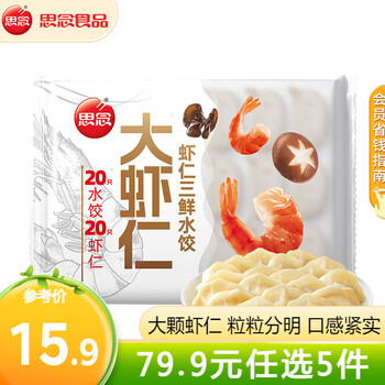 旗舰店思念 大虾仁水饺 上汤小云吞虾饺子馄饨400克早餐食品速冻蒸饺 煎饺 虾仁三鲜水饺400g