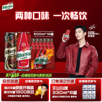 自营乌苏啤酒(wusu)双口味混合装(红500ml*12罐+楼兰500ml*6罐)整箱装