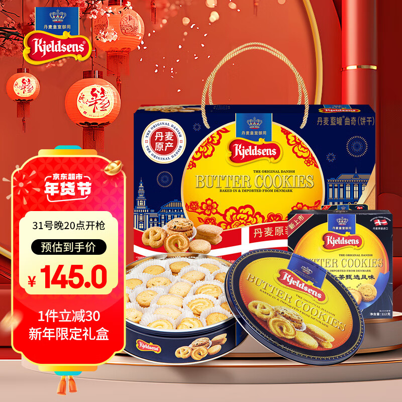 自营蓝罐(Kjeldsens)曲奇饼干新年限定礼盒 908g加赠112g 休闲零食 年货团购福利送礼