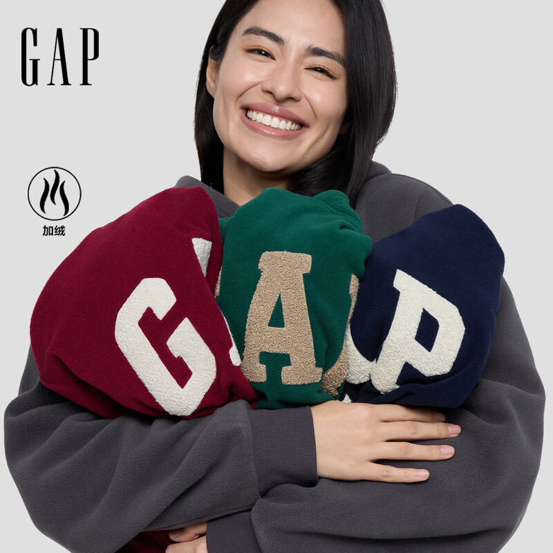 旗舰店盖璞男女装2025秋季新款摇粒绒撞色logo宽松连帽套头卫衣 黑灰色 M (170/92A)亚洲尺码