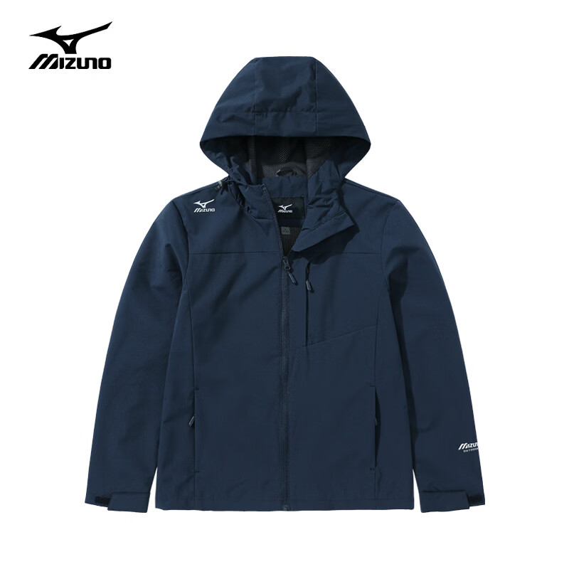 自营美津浓(MIZUNO)户外休闲夹克男梭织防风防水连帽外套