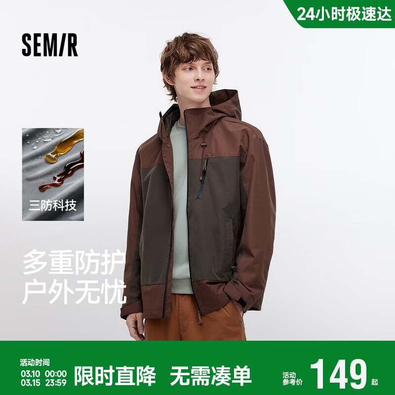 自营森马(Semir)三防外套男户外拼色防风夹克登山露营徒步秋连帽上衣101524108105
