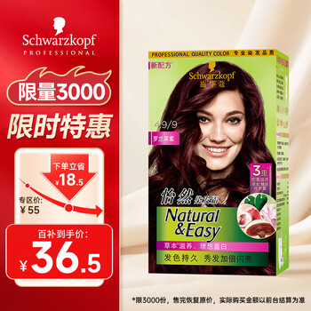 自营施华蔻怡然染发霜4.9/9深紫(草本染发剂染发膏 男女士 盖白发)
