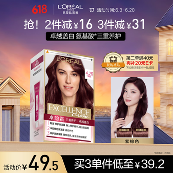 自营欧莱雅卓韵霜染发霜#4.26(紫棕色)遮白发染发膏 男女白头发通用染发剂