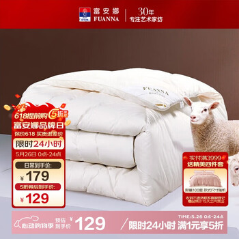 自营富安娜羊毛被51%新西兰进口羊毛被子 单人冬被冬季被芯 约5斤152*210cm
