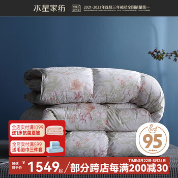 旗舰店水星家纺被子羽绒被 95%白鹅绒填充 白绒吹雪被 秋冬保暖鹅绒被芯冬天厚被 【松花江】鹅绒冬被 升级抗菌 150x210cm(适配1.2米床套件)